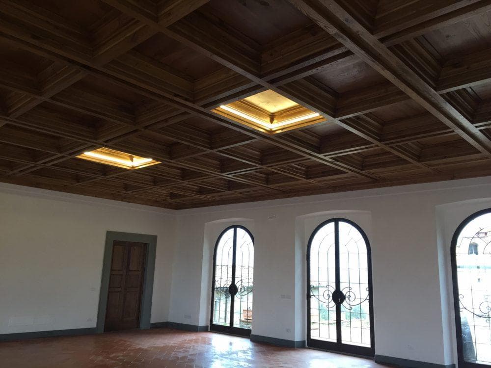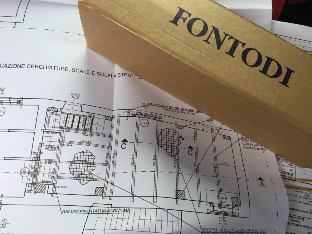 In particolare l’intervento è consistito nella realizzazione di solai intermedi, di collegamento fra piano terra e piani sovrastanti, in acciaio e laterizio ancorati alla struttura esistente, opere di consolidamento della muratura perimetrale al piano terra tramite iniezioni di miscele leganti e interventi cuci scuci, cerchiature e architravature in corrispondenza delle nuove aperture e nella realizzazione di scale in c.a. formate da profili in acciaio e ancorate alla muratura esistente.
