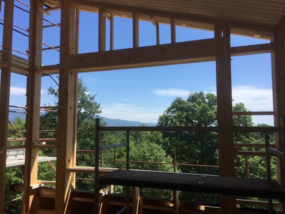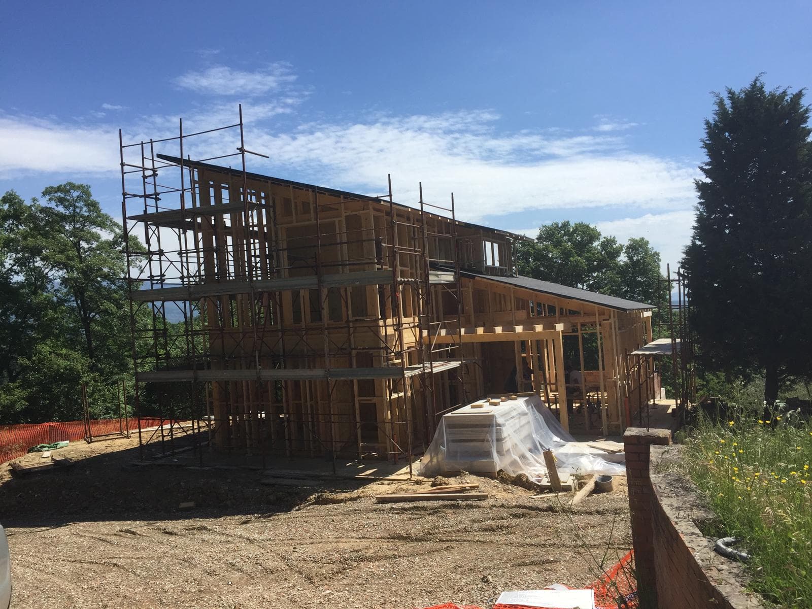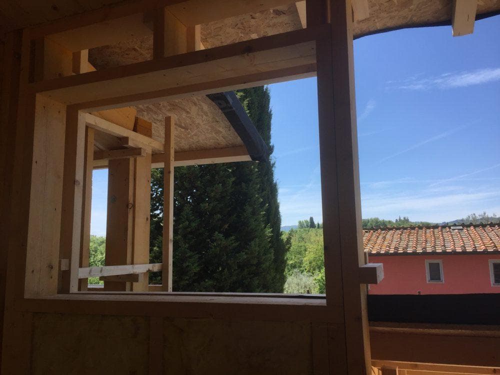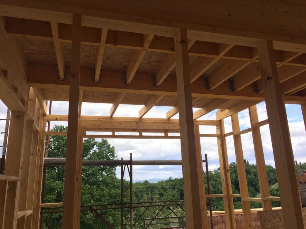 Progetto delle opere strutturali in legno per un edificio residenziale ad alte prestazioni energetiche in provincia di Arezzo. L’edificio si sviluppa per due piani fuori terra e per un piano interrato; la parte di edificio fuori terra, destinato alla residenza, è realizzato con struttura lignea tipo plane-frame, mentre la parte del fabbricato interrata adibita a deposito è realizzata con strutture portanti in cemento armato. Entrambi i blocchi di edifici poggiano su due platee a quote differenti, al fine di garantire una maggiore continuità e rigidezza.