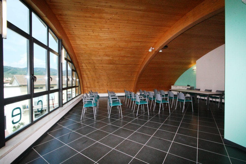 Tutti gli spazi lavorativi, disposti ad anello e serviti da un unica distribuzione centrale, affacciano sulla piazza e sul bellissimo panorama delle colline circostanti, così da assicurare i massimi livelli di illuminazione naturale e confort visivo. Le partizioni interne in cartongesso coibentato e gli infissi impiegati garantiscono un alto valore di comfort acustico per un ambiente di lavoro.