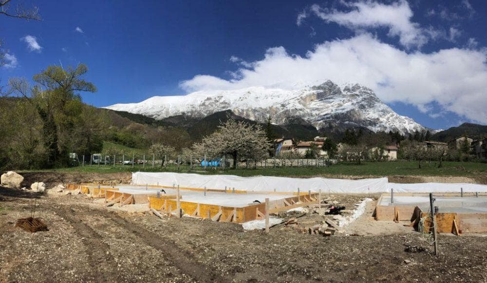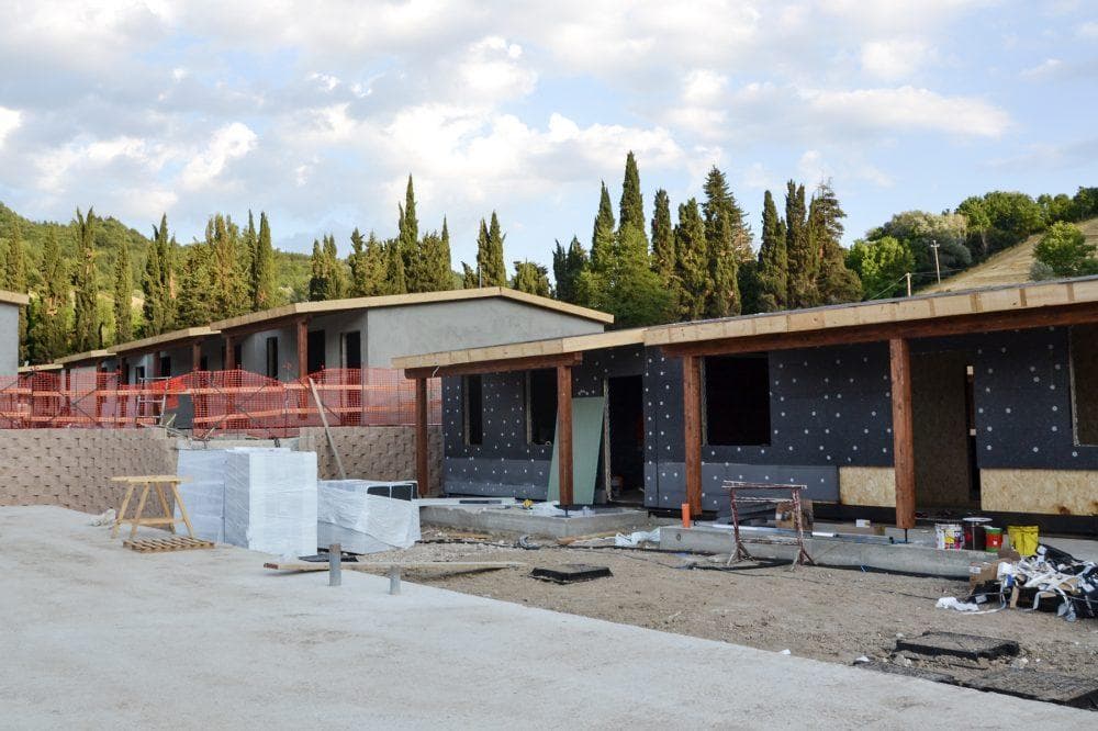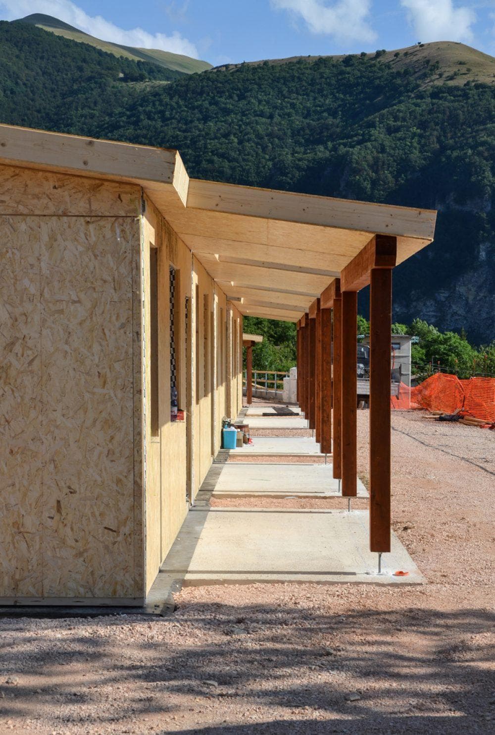 La richiesta specifica di strutture prefabbricate, antisismiche e anche facilmente smontabili, ha portato alla scelta del legno con tecnologia Platform Frame. Questa, oltre a permettere un contenimento dei costi di realizzazione, consente più facilmente di realizzare finiture tradizionali con caratteristiche di isolamento termico importanti.