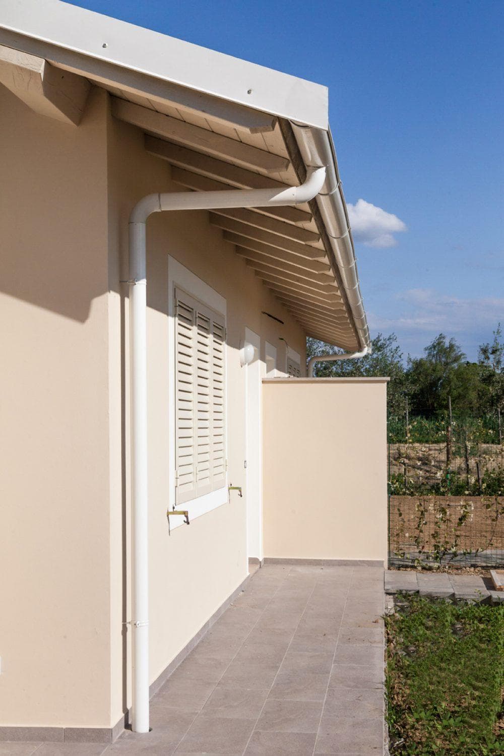 Anche la scelta dei sistemi costruttivi e dei materiali si è basata sui principi dell’architettura bioclimatica: struttura in muratura portante (antisismica), tetto ventilato con struttura in legno lasciato a vista, intonaci a calce naturale (zeolite e pozzolanica) per garantire un buon controllo di umidità e temperatura, pitture naturali ai silicati di calce, pannelli solari termici in copertura.